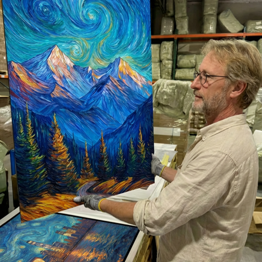 We upgraded our canvas from the standard 330g to a Heavyweight 380g Fabric with a 6x6 weave. It feels thick, textured, and substantial — just like an original oil painting.